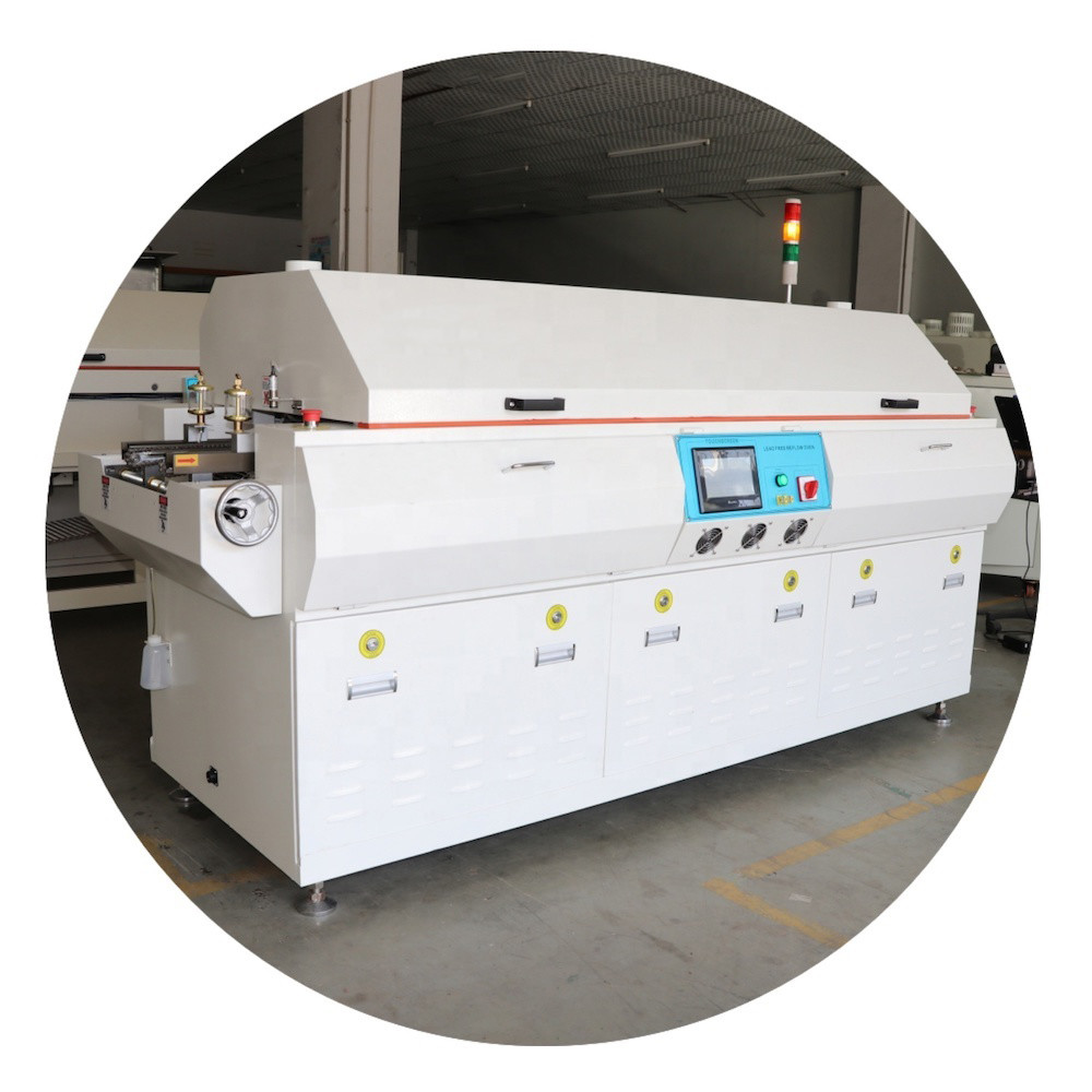 Αυτό το 6-ζώνων SMT αμόλυβδης έλξης έλξης έχει προηγμένο έλεγχο κλειστού κυκλώματος PLC + PID για ακριβή διαχείριση θερμοκρασίας και επαναληπτά προφίλ.συνδυάζει αποτελεσματικότητα και αξιοπιστία..