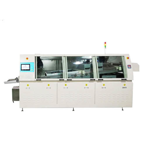 Τα PCB με τοποθετημένα εξαρτήματα τροφοδοτούνται αυτόματα στο σύστημα μεταφοράς αλυσίδας, προχωρώντας μέσω των διαδικασιών ψεκασμού ροής, προθέρμανσης, συγκόλλησης κυμάτων και ψύξης πριν από την έξοδο από το σύστημα.